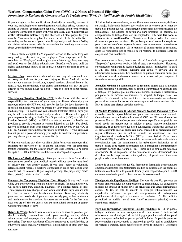 Get the free Workers’ Compensation Claim Form (DWC 1)