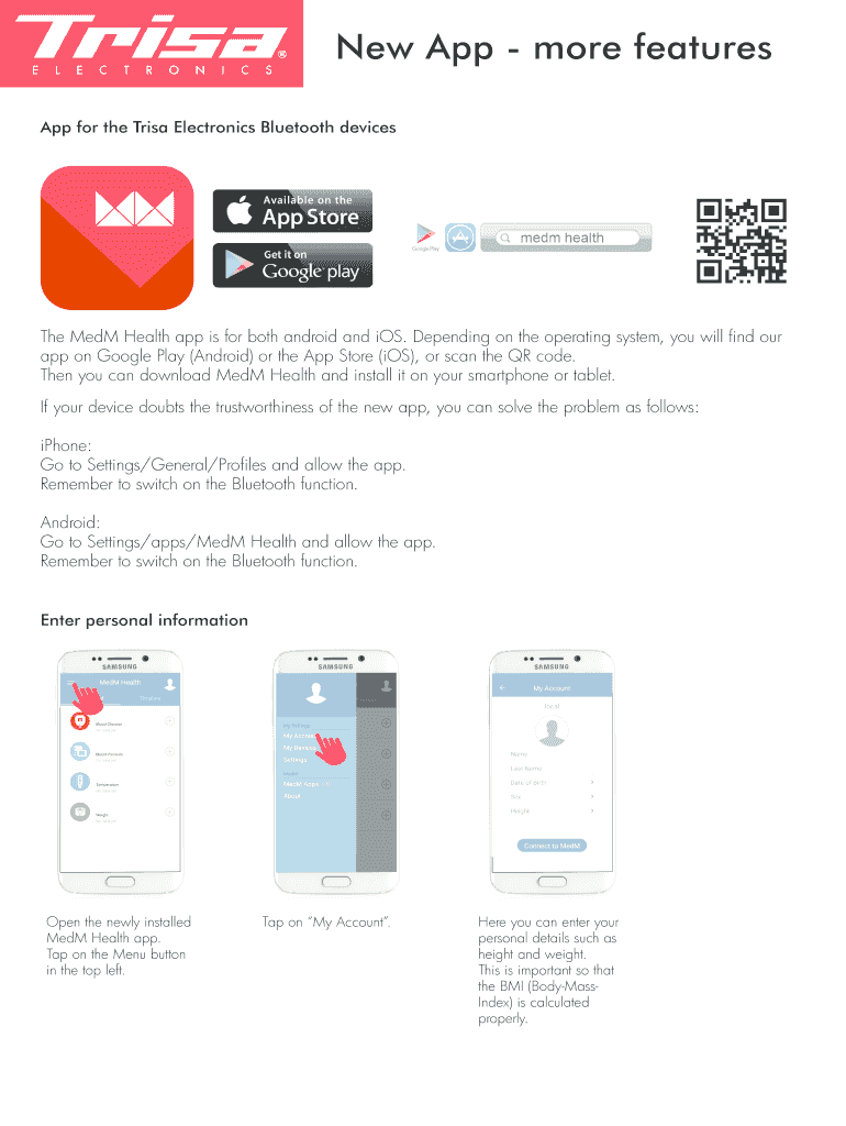 New App more features App for the Trina Electronics Bluetooth devices Med Health app is for both android and iOS. Depending on the operating system, you will find our app on Google Play (Android)
