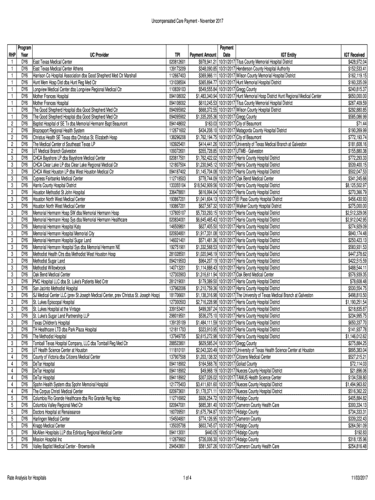 Uncompensated Care Payment November 2017RHP 1 1 1 1 1 1 1 1 1 2 2 2 2 2 3 3 3 3 3 3 3 3 3 3 3 3 3 3 3 3 3 3 3 3 3 3 3 3 3 3 3 3 3 4 4 4 4 4 4 5 5 5 5 5 5 5 5Program Year DY6 DY6 DY6 DY6 DY6 DY6 DY6