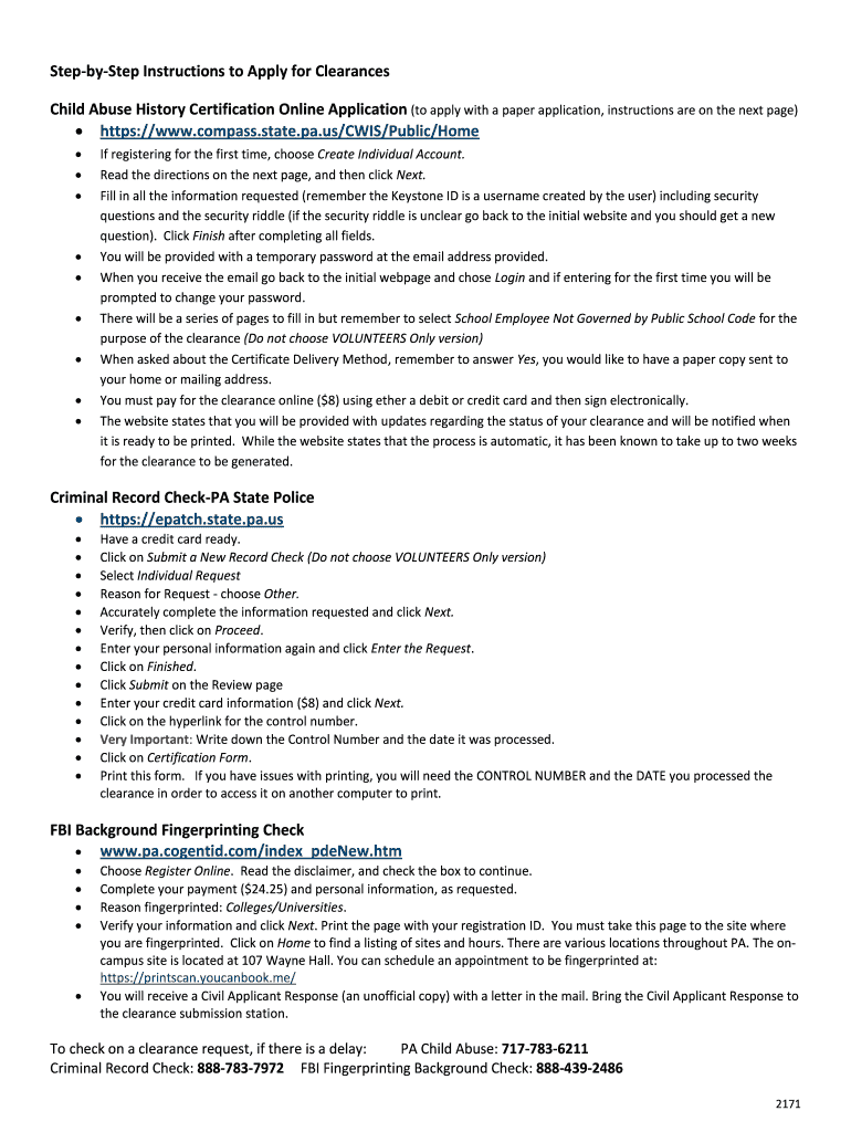 Stepsister Instructions to Apply for Clearances Child Abuse History Certification Online Application (to apply with a paper application, instructions are on the next page) https://www.compass.state.pa.us/CWIS/Public/Home