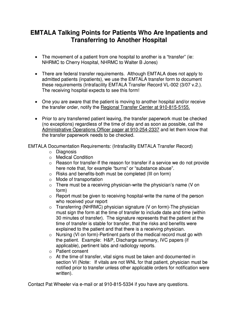 IMPALA Talking Points for Patients Who Are Inpatients and