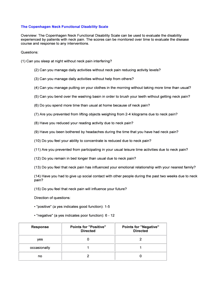 Get the free The Copenhagen Neck Functional Disability Scale