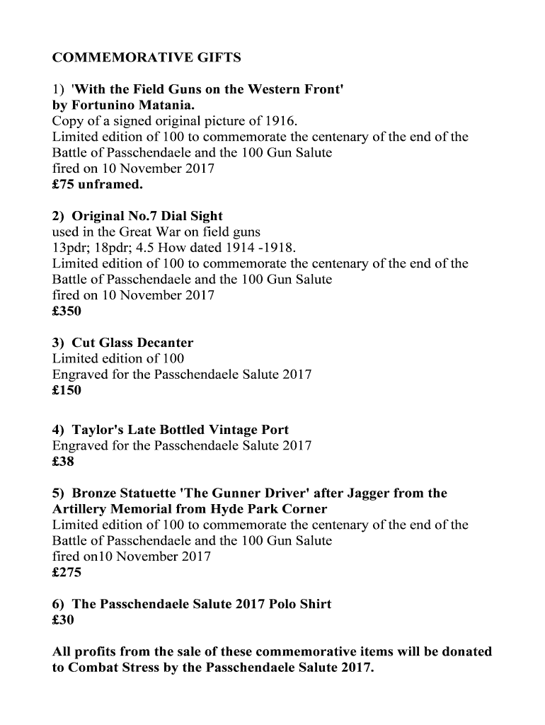 COMMEMORATIVE GIFTS 1) 'With the Field Guns on the Western Front by Fortunato Catania. Copy of a signed original picture of 1916. Limited edition of 100 to commemorate the centenary of the end of