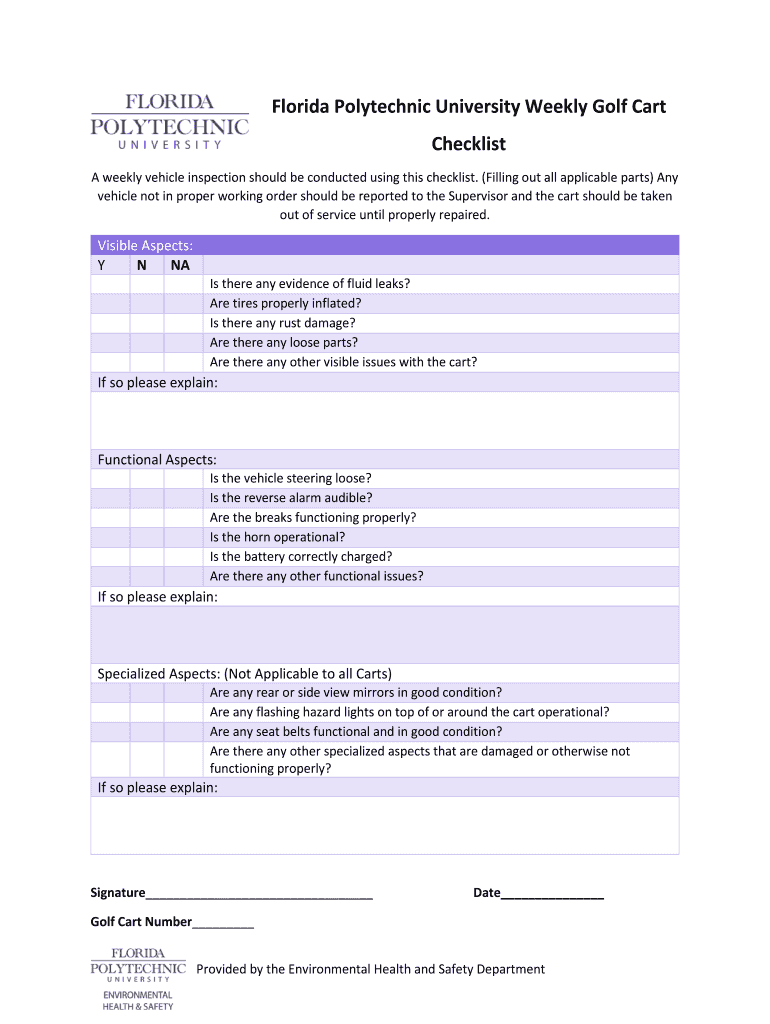 Florida Polytechnic University Weekly Golf Cart