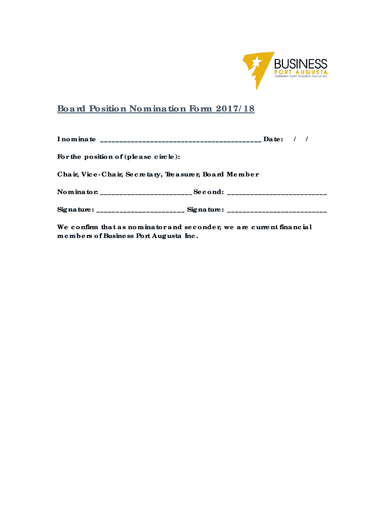 Board Position Nomination Form is not the form you're looking for?Search for another form here.