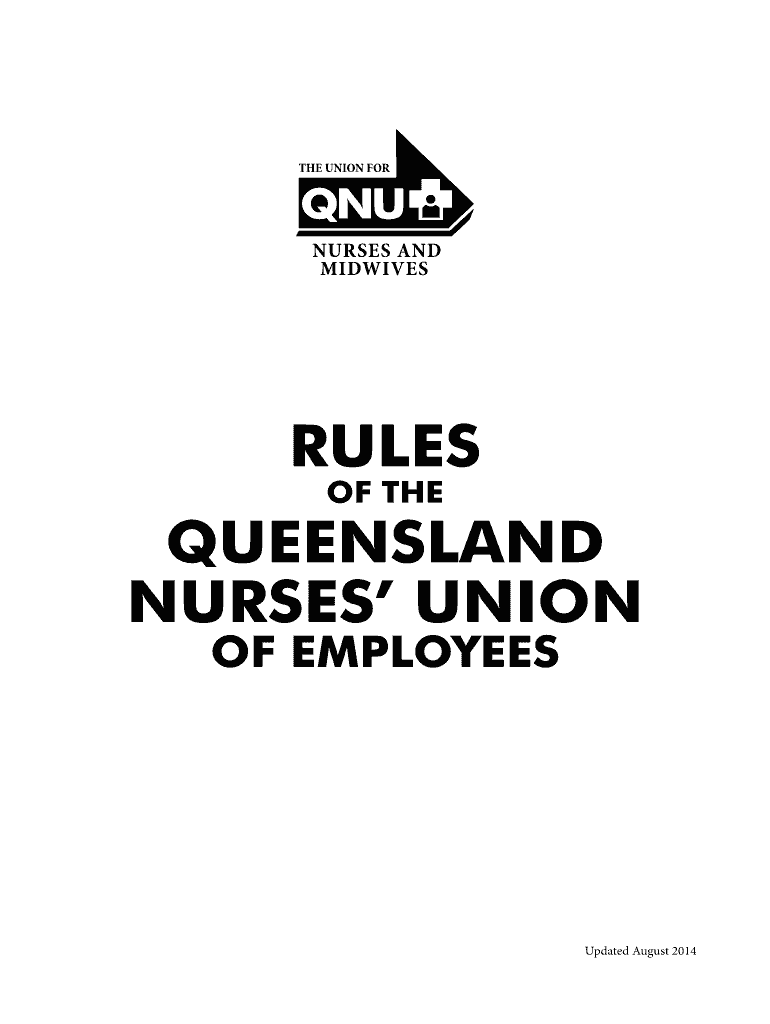 RULES OF QUEENSLAND NURSES UNION OF EMPLOYEESUpdated August 2014RULES OF THE QUEENSLAND NURSES UNION OF EMPLOYEES 1. Title........................................................................ 331.