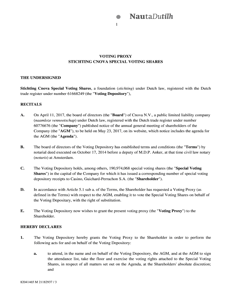 1VOTING PROXY SIGHTING NOVA SPECIAL VOTING SHARES UNDERSIGNED Sighting Nova Special Voting Shares, a foundation (sighting) under Dutch law, registered with the Dutch trade register under number 61668249