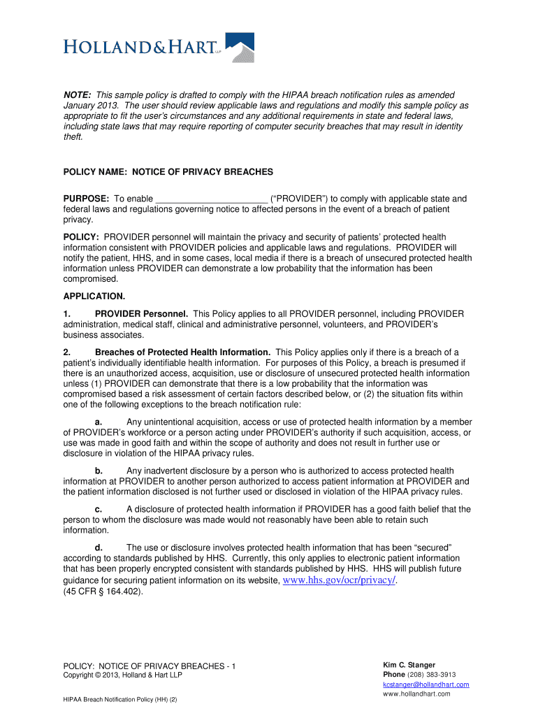 Get the free NOTE: This sample policy is drafted to comply with the HIPAA breach notification rul...