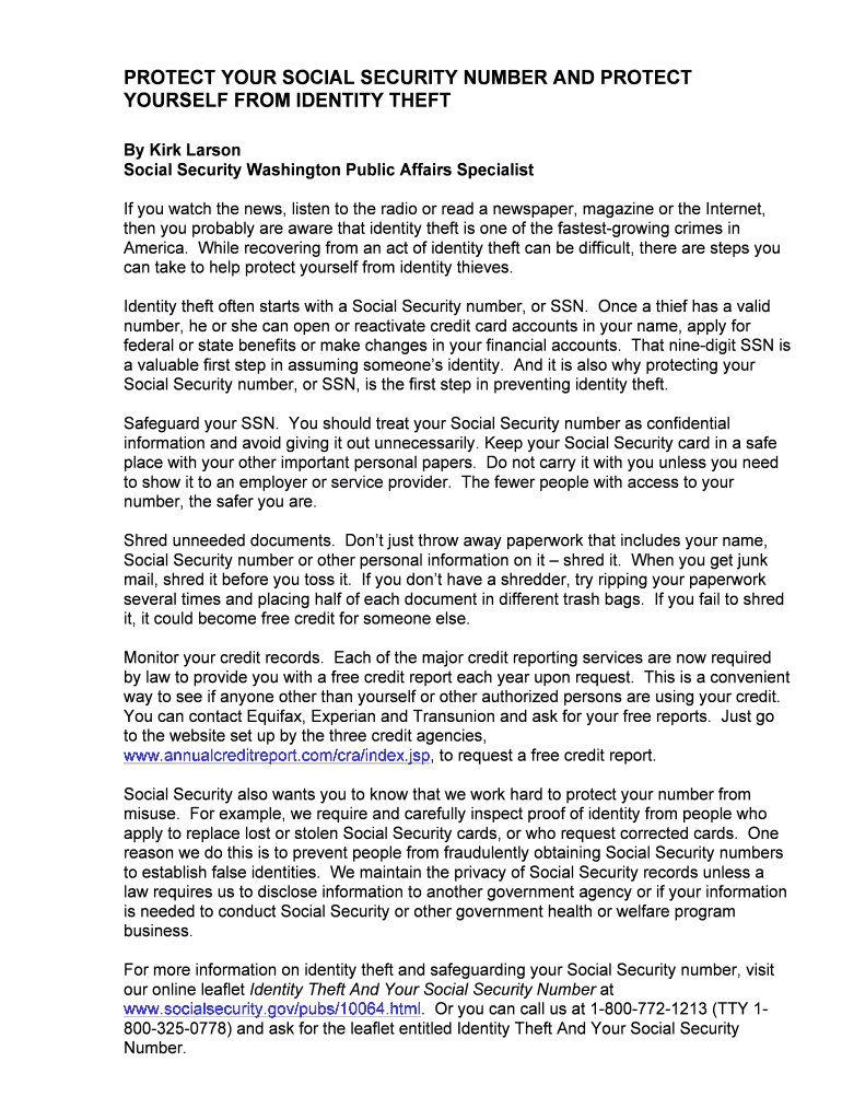 PROTECT YOUR SOCIAL SECURITY NUMBER AND PROTECT