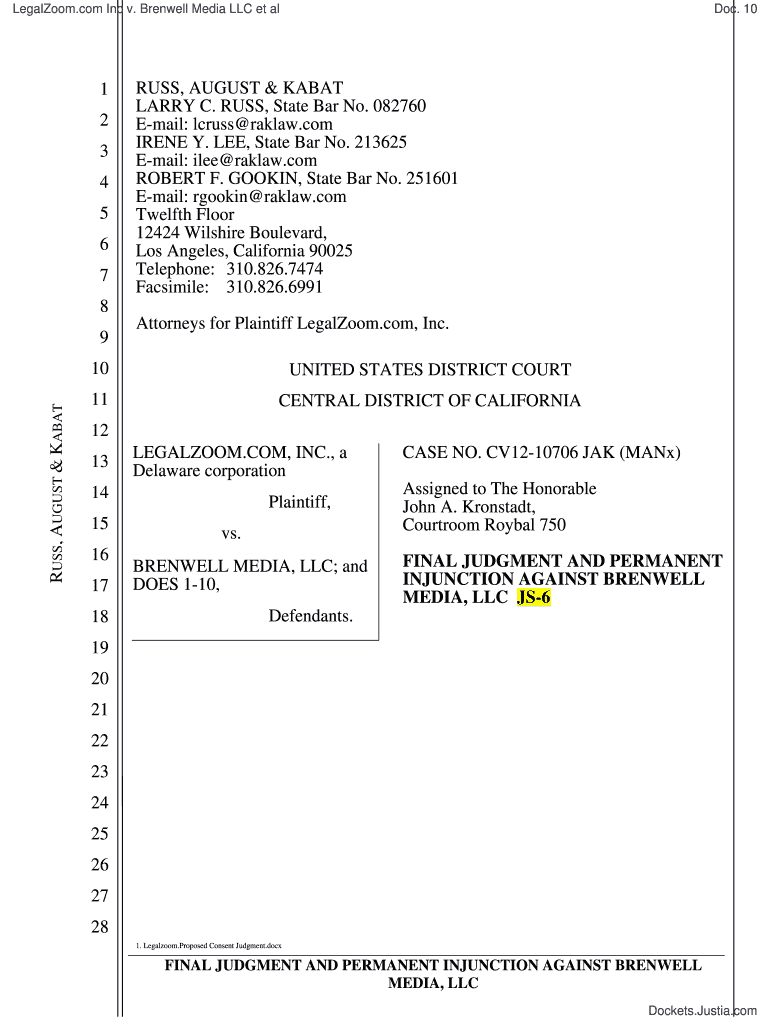 LegalZoom.com Inc v. Barnwell Media LLC et al1 2 3 4 5 6 7Doc. 10RUSS, AUGUST & RABAT LARRY C. RUSS, State Bar No. 082760 Email: across raklaw.com IRENE Y. LEE, State Bar No. 213625 Email: Lee raklaw.com