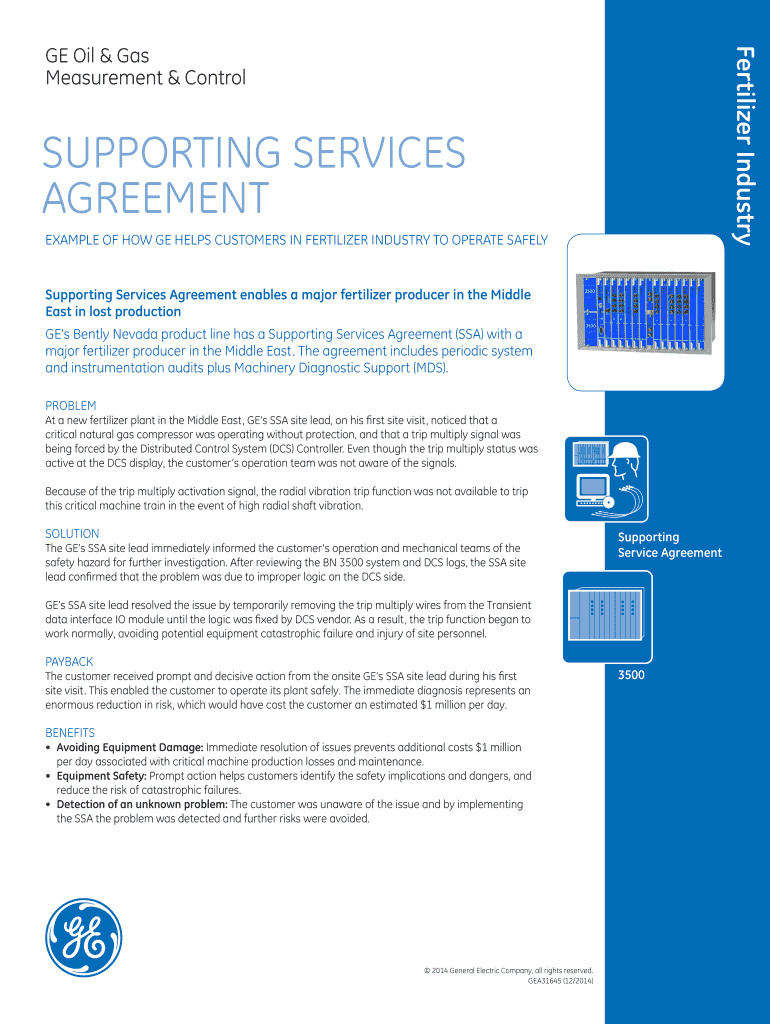 Fertilizer Industry GE Oil & Gas Measurement & ControlSUPPORTING SERVICES AGREEMENT EXAMPLE OF HOW GE HELPS CUSTOMERS IN FERTILIZER INDUSTRY TO OPERATE SAFELYSupporting Services Agreement enables