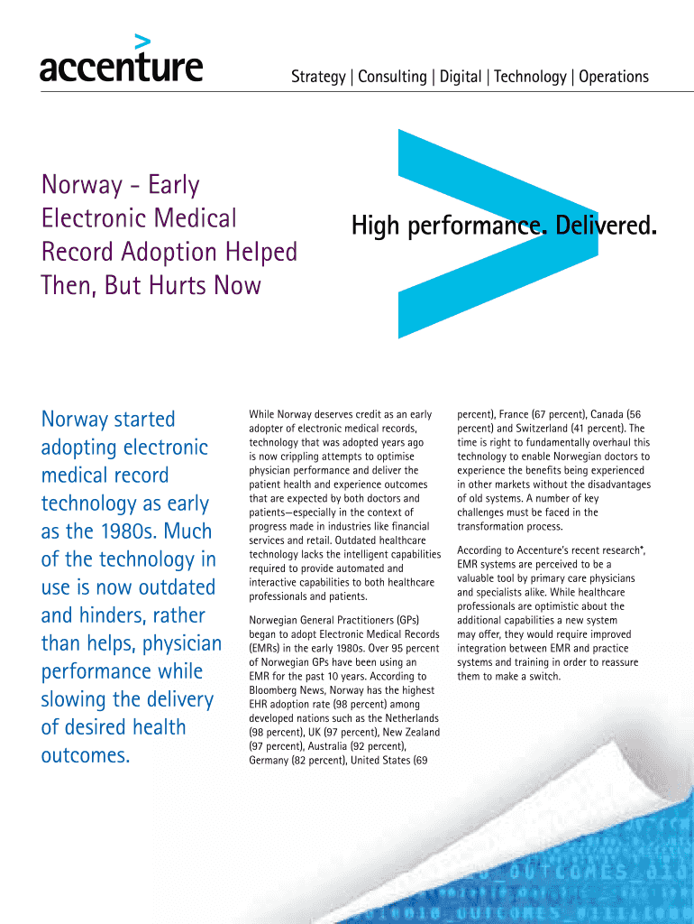 Human Services Norway Early Electronic Medical Record Adoption Helped Then, But Hurts Now Norway started adopting electronic medical record technology as early as the 1980s. Much of the technology