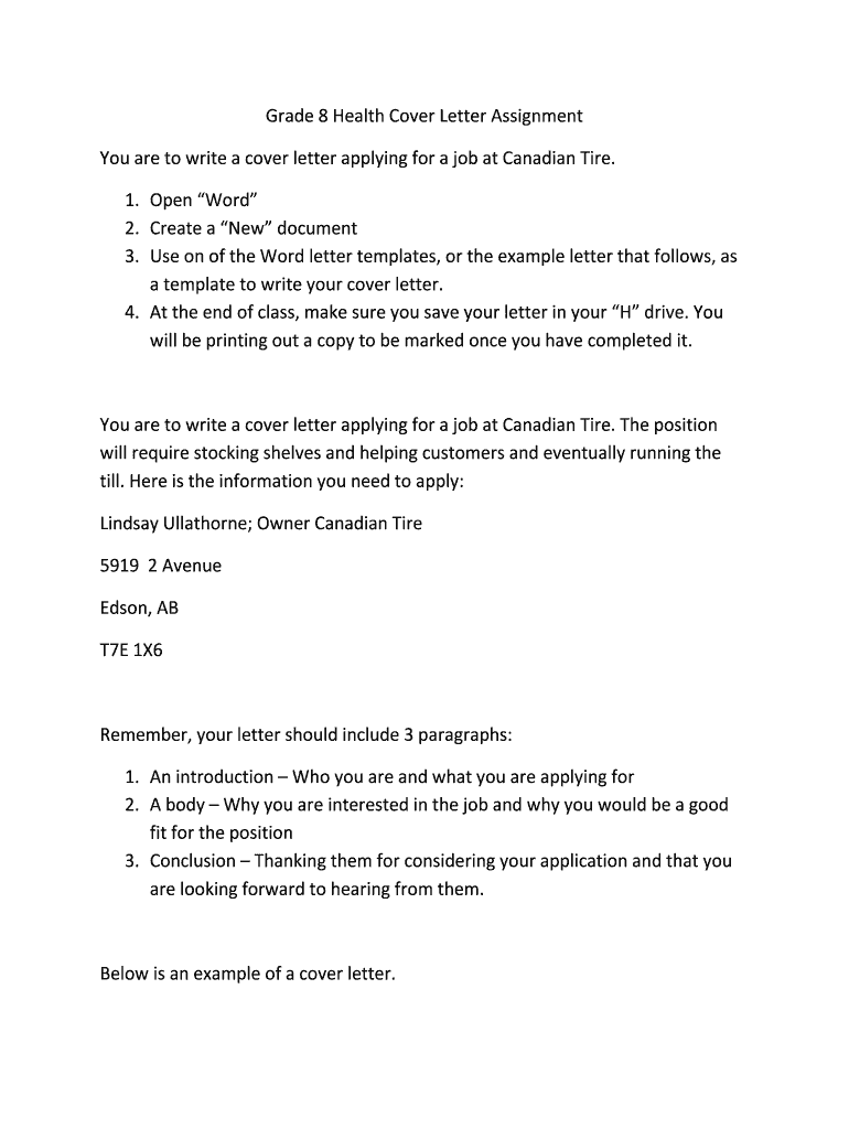 Get the free Grade 8 Health Cover Letter Assignment