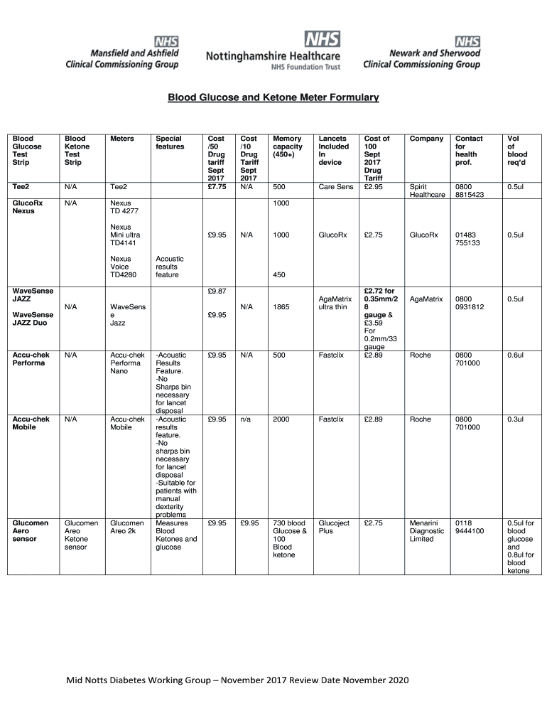 Get the free Blood Glucose and Ketone Meter Formulary