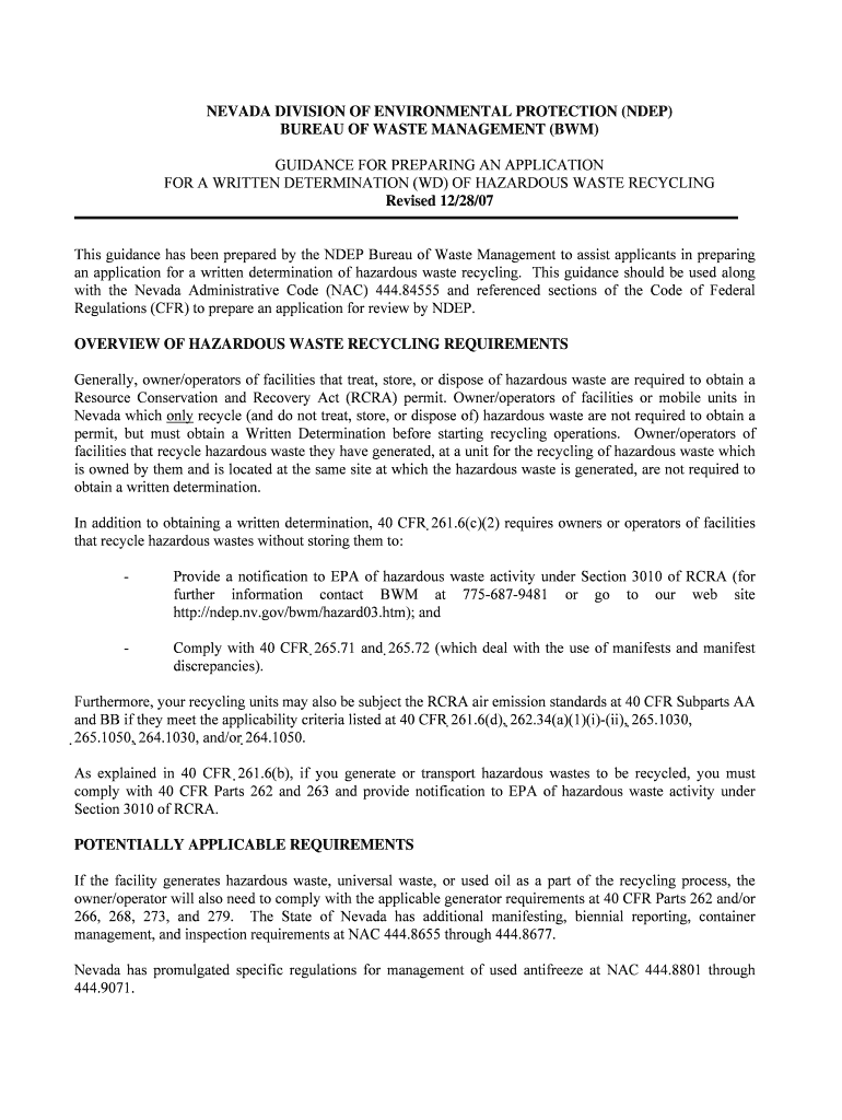 Get the free NEVADA DIVISION OF ENVIRONMENTAL PROTECTION (NDEP)