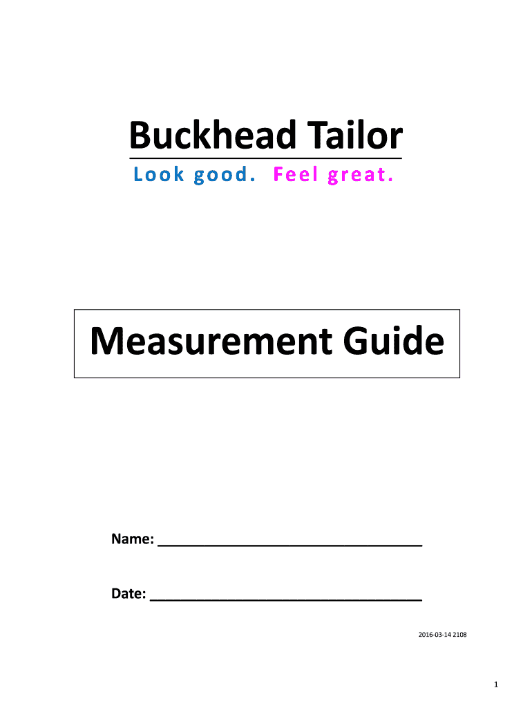 Bulkhead Tailor Look good. Feel great. Measurement Guidance: Date: 20160314 21081This guide will show you how to take all the measurements you will need for your order. 1. Please round all measurements