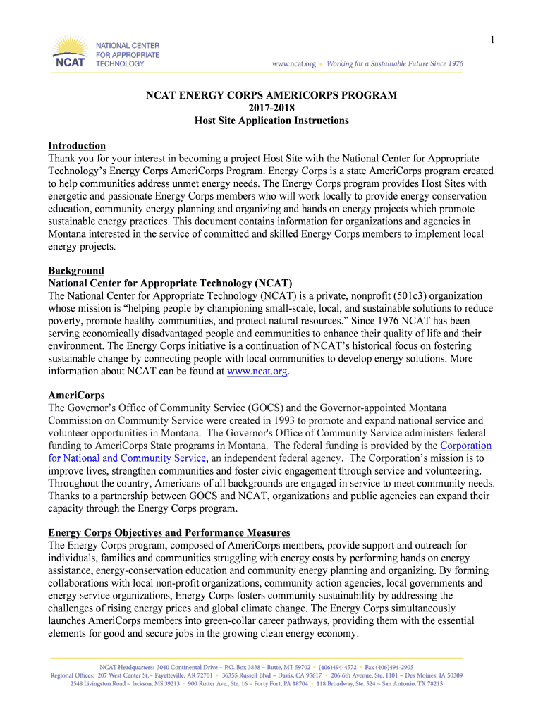 1NCAT ENERGY CORPS AmeriCorps PROGRAM