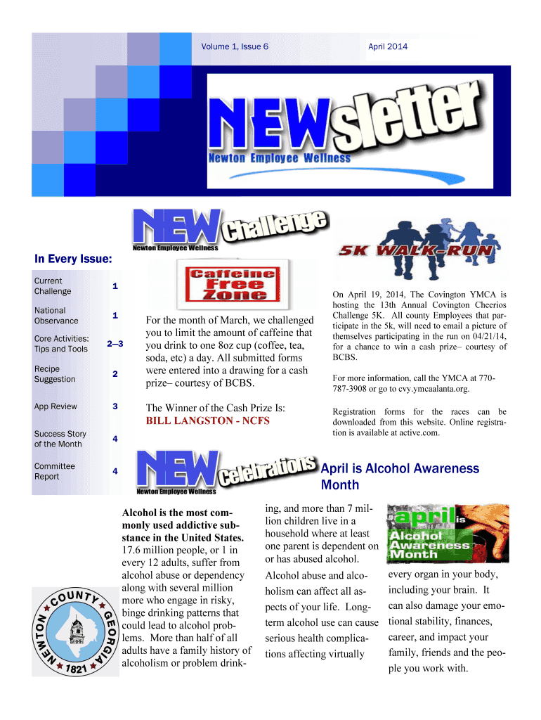 Volume 1, Issue 6April 2014In Every Issue: Current Challenge1National Observance1Core Activities: Tips and Tools23Recipe Suggestion2App Review3Success Story of the Month4Committee Report4For the month