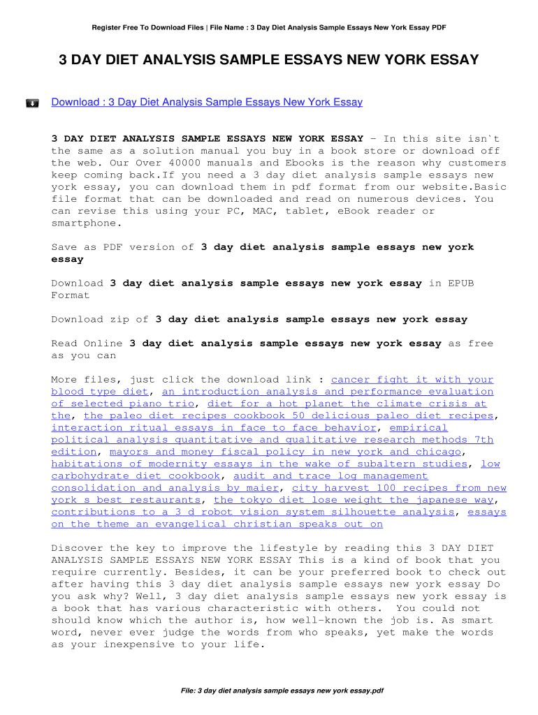 Get the Register Free To Download Files File Name : 3 Day Diet Analysis Sample Essays New York Es...
