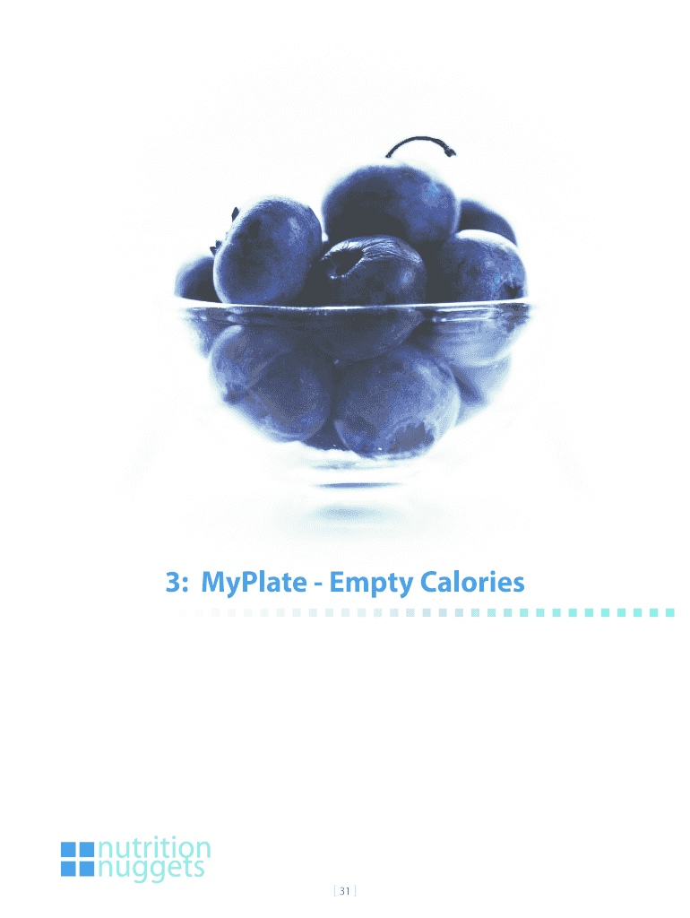 3: Plate Empty Calories 31 3: Plate Empty CaloriesActivity A: Pumpkin Parfait Objectives: Participants will be able to: t *EFOUJGZJUFNTUIBUBSFDPOTJEFSFEFNQUZDBMPSJFT t $SFBUFBSFEVDFEGBUDBMPSJFTOBDLMaterials:Food