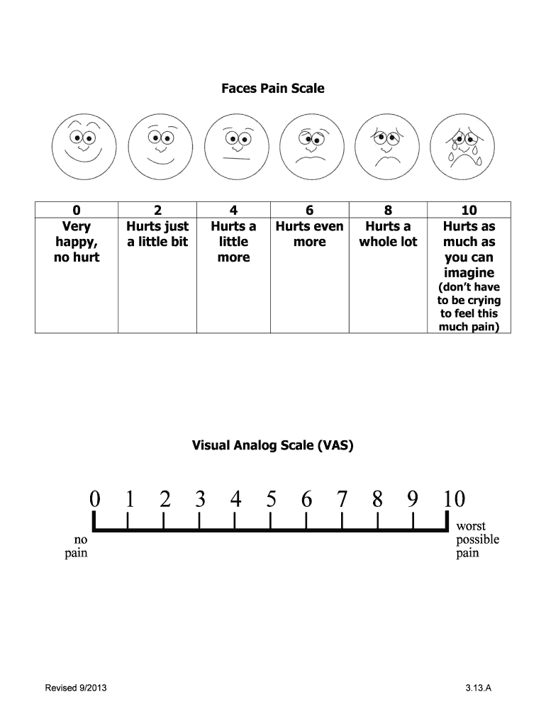 Note: The faces pain scale is often used with children or individuals who have difficulty expressing their pain verbally.