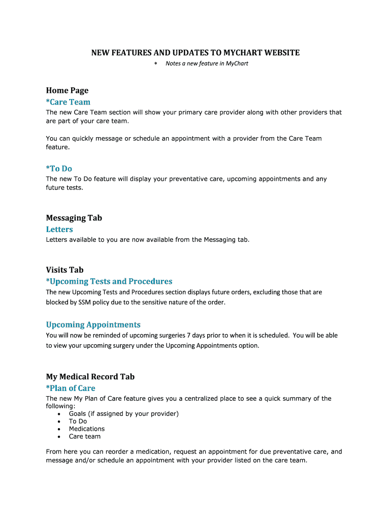 Get the free NEW FEATURES AND UPDATES TO MYCHART WEBSITE