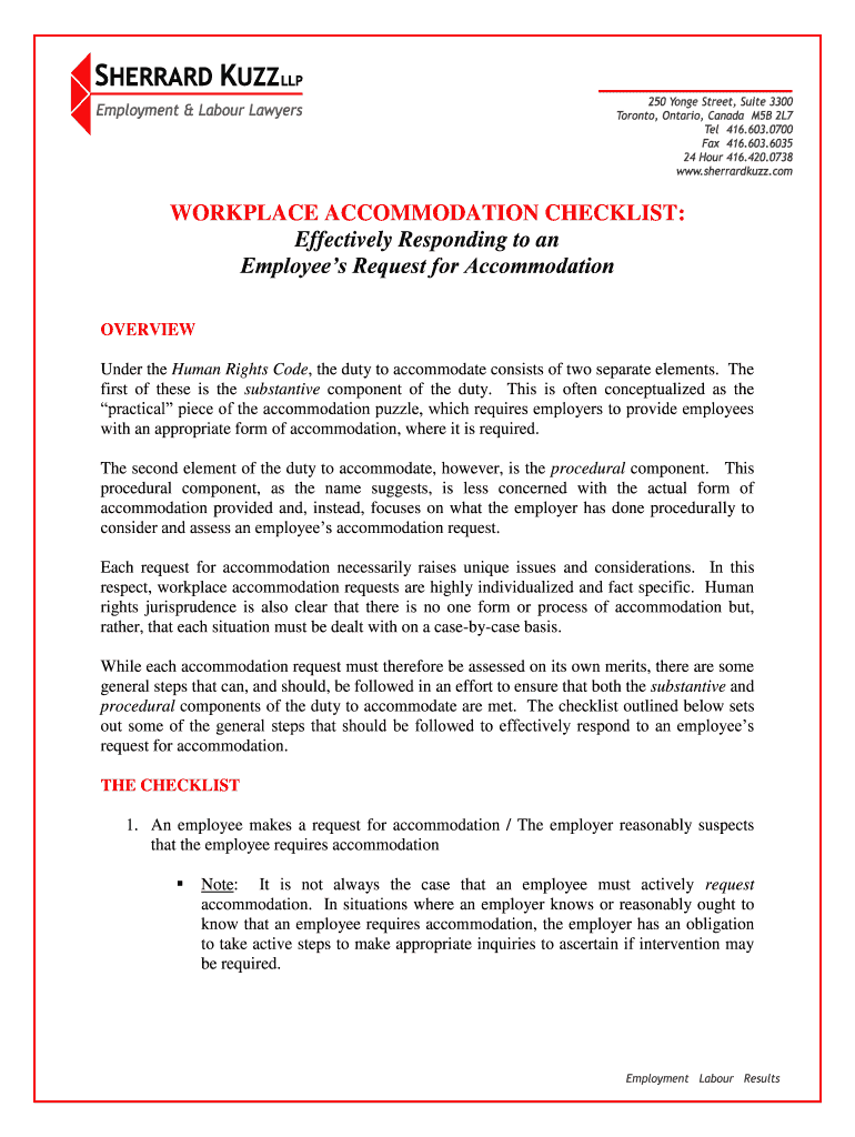 Workplace accommodation checklists are useful for any employer or HR department that wants to ensure compliance with accommodation requirements for employees.