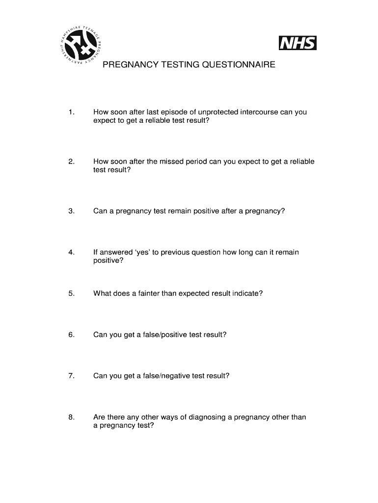 Fill out your pregnancy testing questionnaire online with pdfFiller!