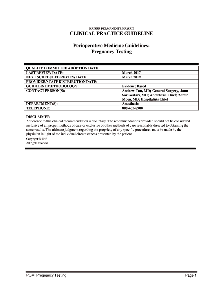 KAISER PERMANENT HAWAIICLINICAL PRACTICE GUIDELINE