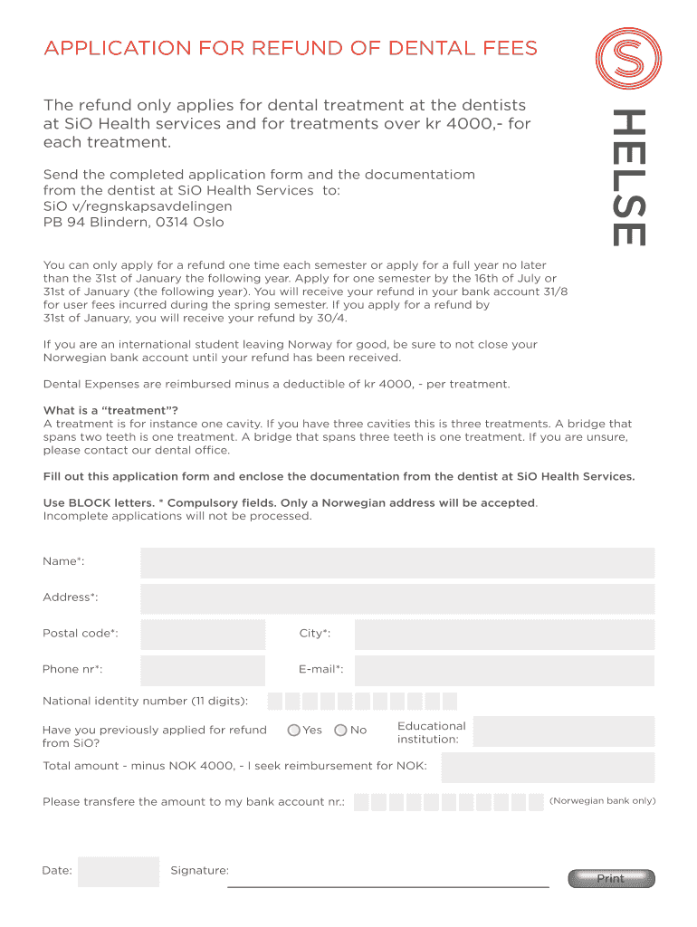 APPLICATION FOR REFUND OF DENTAL FEES