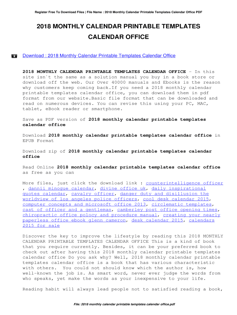 Register Free To Download Files File Name : 2018 Monthly Calendar Printable Templates Calendar Office PDF2018 MONTHLY CALENDAR PRINTABLE TEMPLATES CALENDAR OFFICE Download : 2018 Monthly Calendar