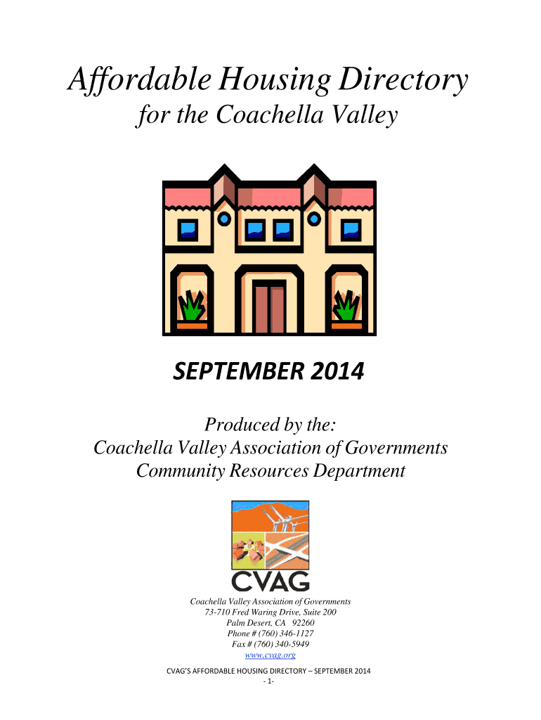 Affordable Housing Directory for the Coachella ValleySEPTEMBER 2014 Produced by the: Coachella Valley Association of Governments Community Resources DepartmentCoachella Valley Association of Governments