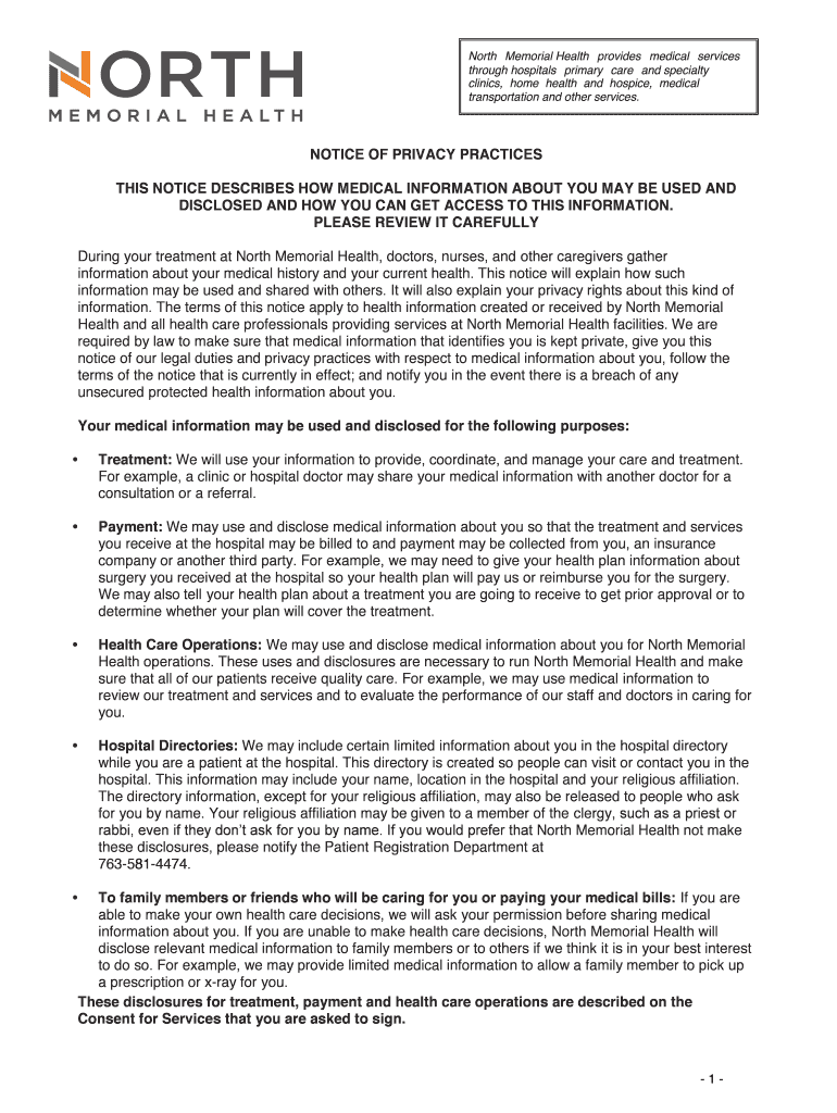 Remember to follow any additional guidelines or requirements provided by North Memorial Health.