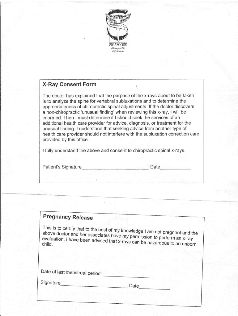 Any patient who needs x-ray imaging done is required to fill out x-ray consent.