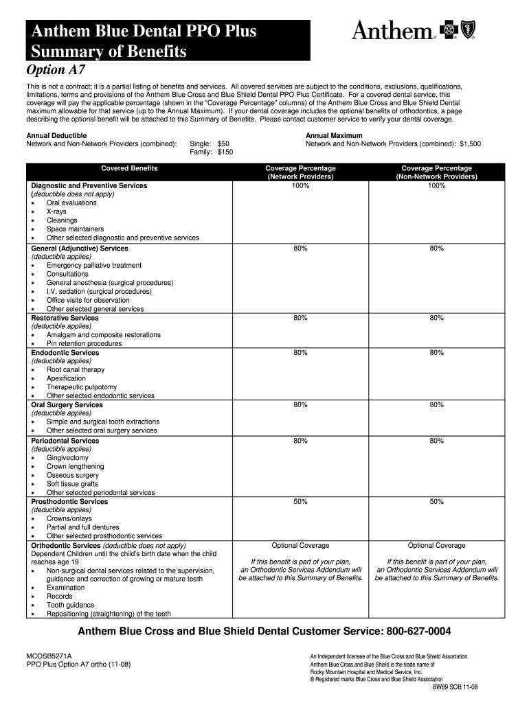 Get the free Anthem Blue Dental PPO Plus