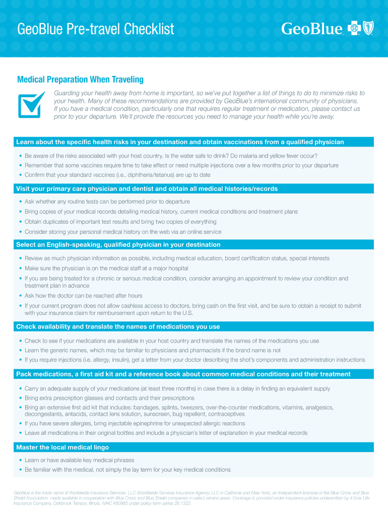 How to fill out geoblue pre-travel checklist?