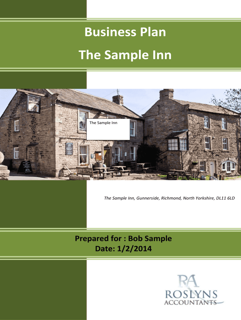 Business Plan The Sample Inn The Sample Inn The Sample Inn, Gunner side, Richmond, North Yorkshire, DL11 6LD Prepared for : Bob Sample Date: 1/2/2014 Index Key Personnel 5 Sample Inn, North Yorkshire
