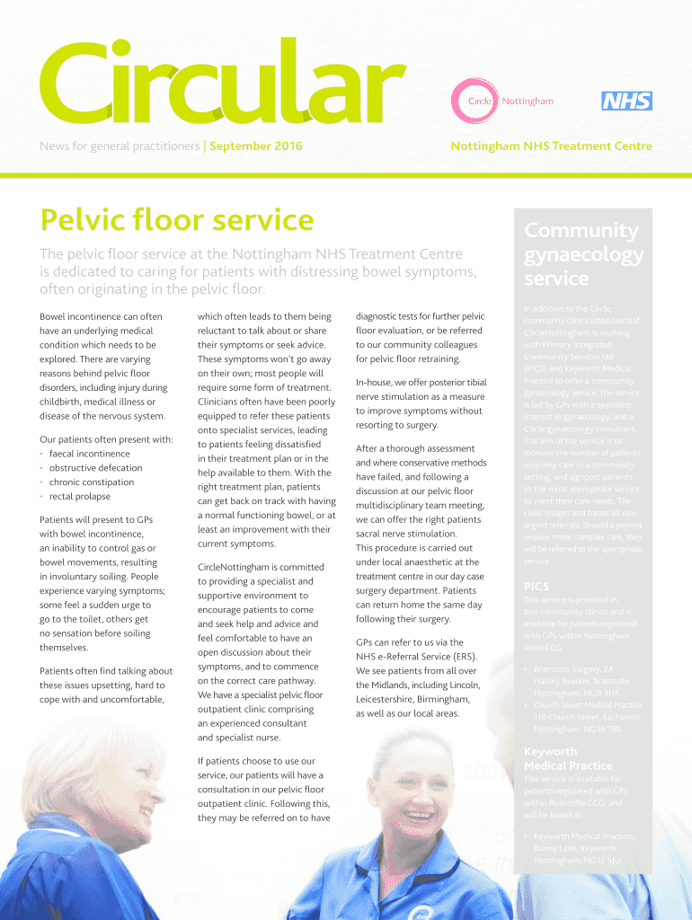 News for general practitioners September 2016Nottingham NHS Treatment CentrePelvic floor service The pelvic floor service at the Nottingham NHS Treatment Center is dedicated to caring for patients