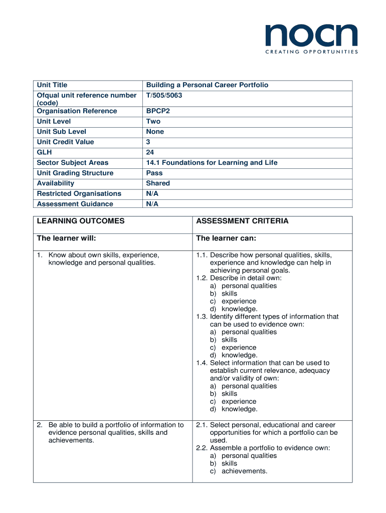 Unit TitleBuilding a Personal Career PortfolioOfqual unit reference number