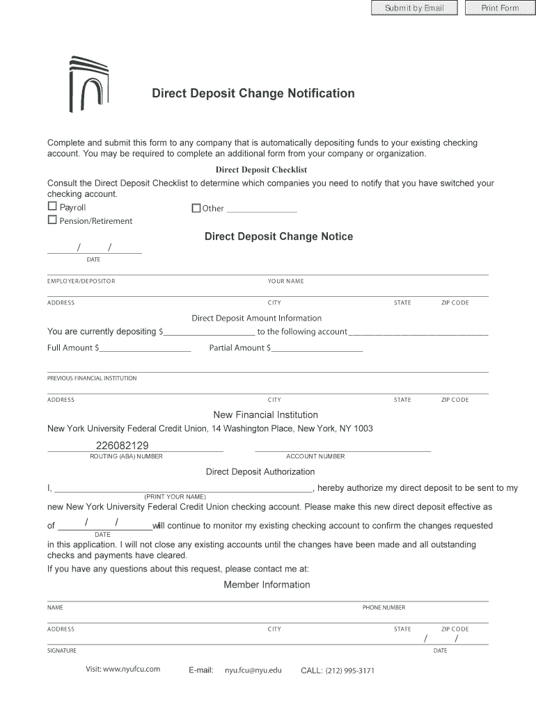 Get the free Direct Deposit Change Notification Form
