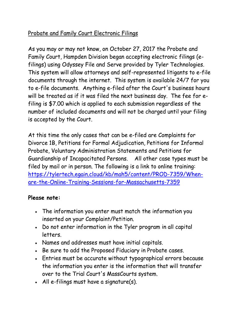 Get the free Probate and Family Court Electronic Filings