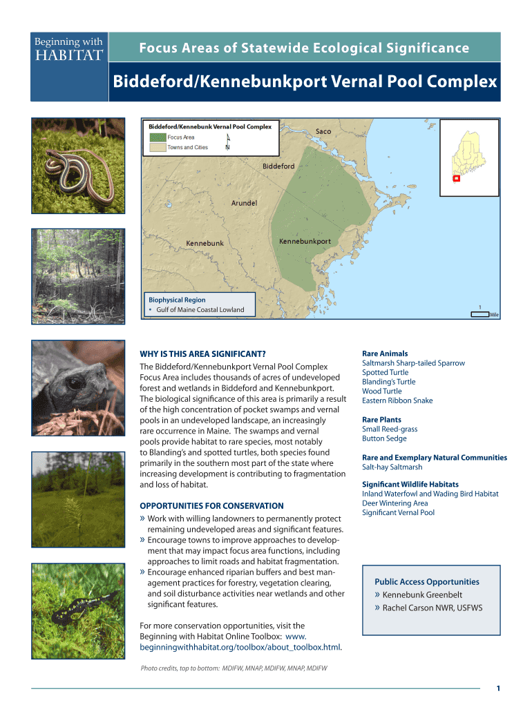 with Ecological Significance: Middleford/Kennebunkport Vernal Pool ComplexHabitatFocus Areas of Statewide Ecological SignificanceBiddeford/Kennebunkport Vernal Pool