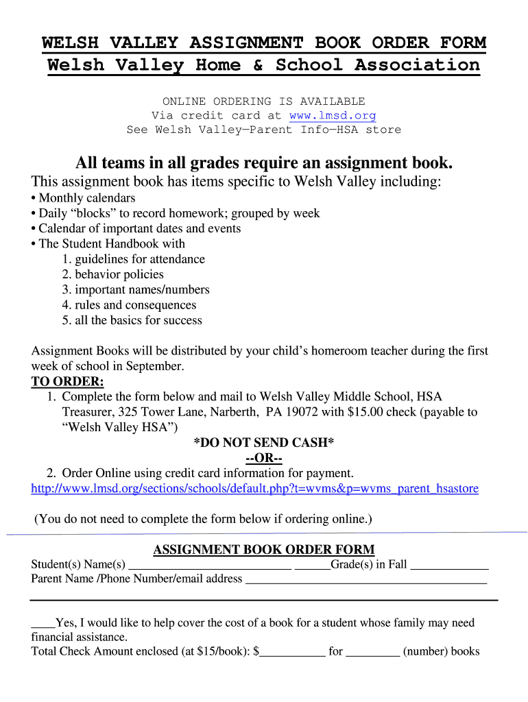 Get the free WELSH VALLEY ASSIGNMENT BOOK ORDER FORM