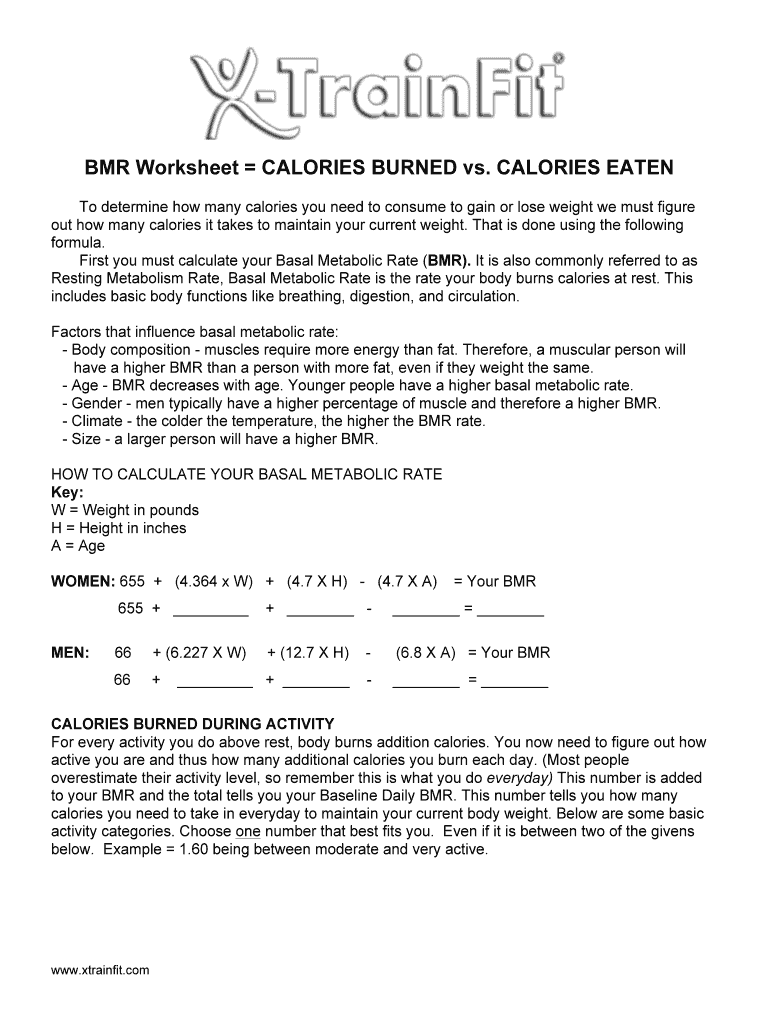 How to fill out bmr worksheet calories burned