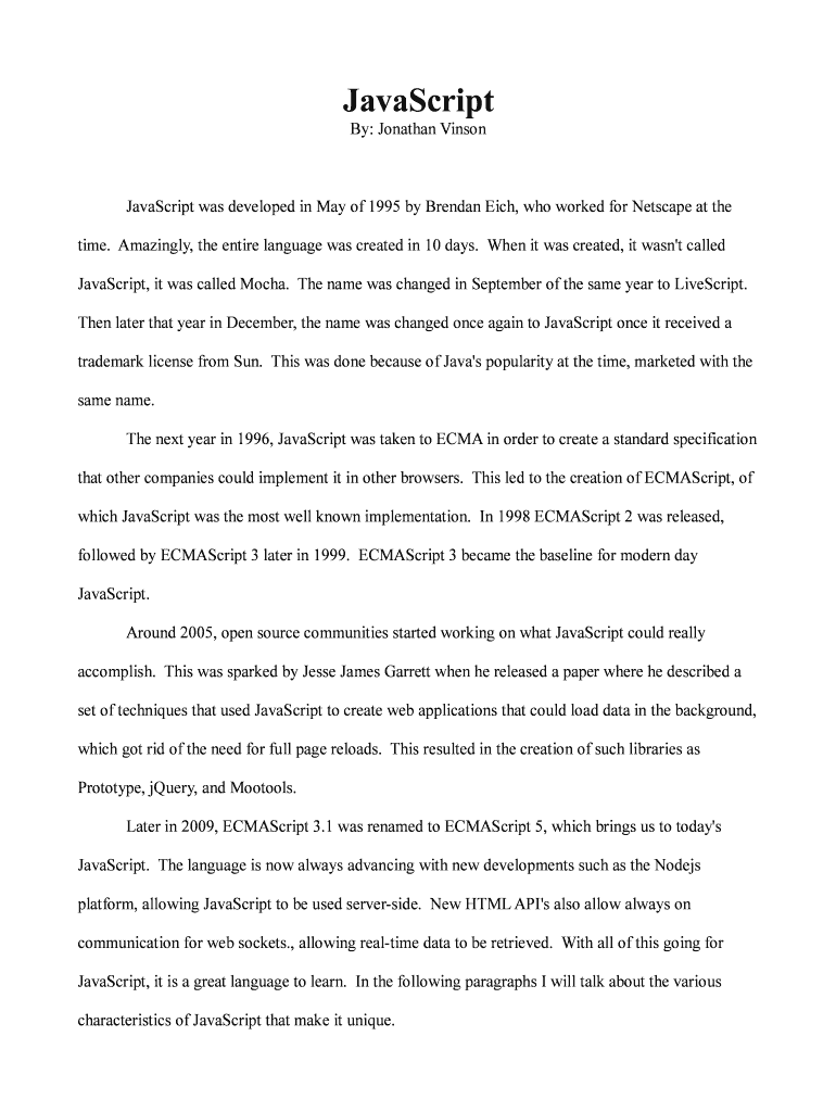 By: Jonathan Vinson JavaScript was developed in May 1995 by Brendan Each, who worked for Netscape at the