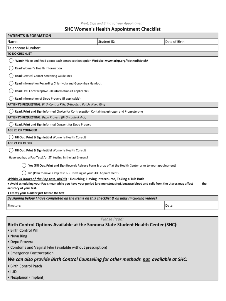 Print, Sign and Bring to Your Appointments Women\'s Health Appointment Checklist