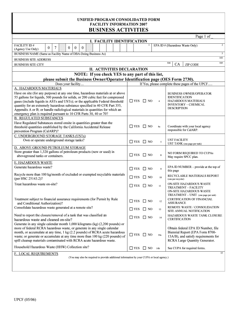 The Unified Program Consolidated Form (UPCF) is crucial for environmental compliance in California. It serves as a comprehensive tool for facilities to report hazardous materials and waste generation, ensuring adherence to state and federal regulations. This regulatory document collects vital information about various environmental activities, playing a pivotal role in maintaining safety standards across numerous facilities. By utilizing the califronia upcf form, facilities can streamline their reporting processes, thus facilitating better compliance.