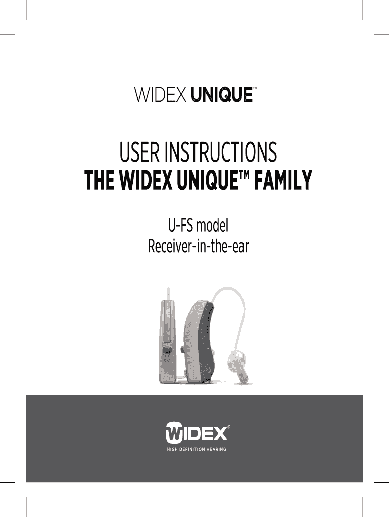 WIDE UNIQUER INSTRUCTIONS THE WIDE UNIQUE FAMILY UFS model ReceiverintheearYOUR WIDE HEARING AID To be filled out by the hearing care professional) Your hearing aid series:2PROGRAM Universal Audibility