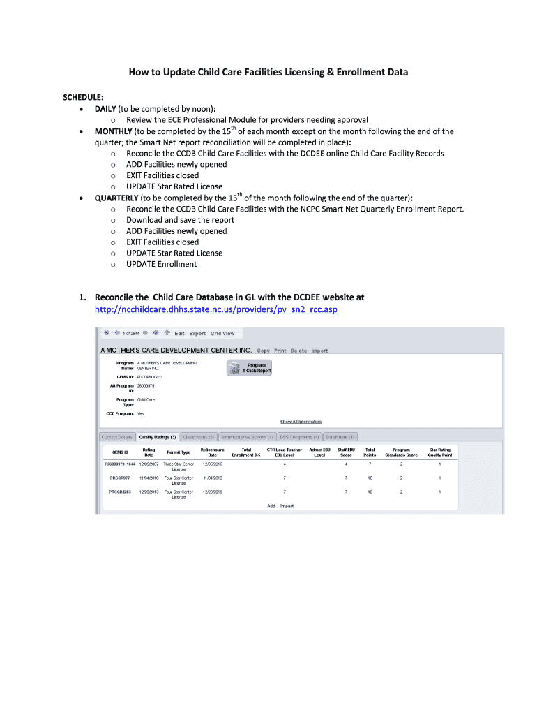 Get the free How to Update Child Care Facilities Licensing & Enrollment Data