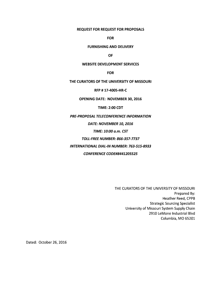 Get the free REQUEST FOR REQUEST FOR PROPOSALS